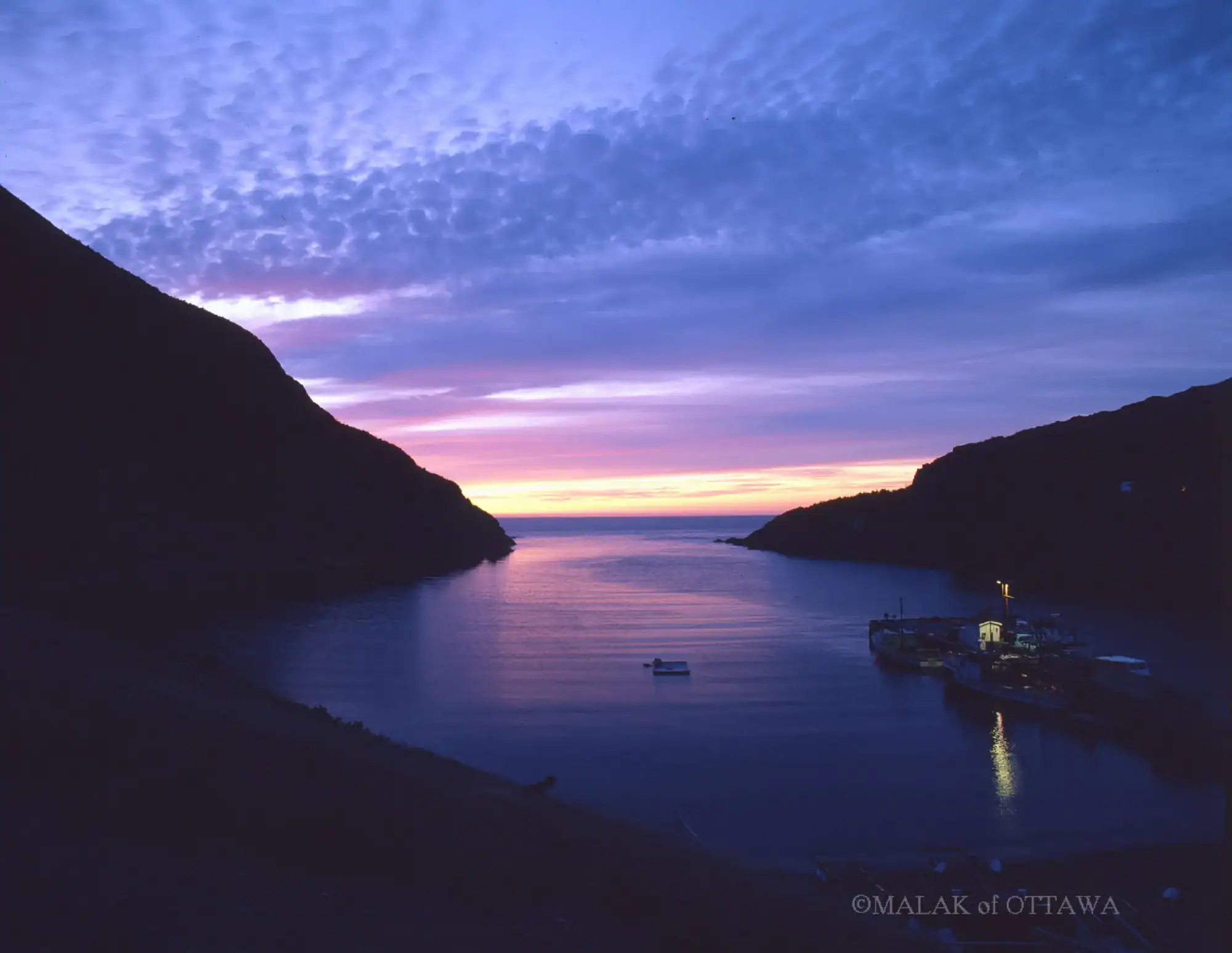 The Bay of Islands is an extensive inlet located on the west coast of Newfoundland. It is a sub-basin of the Gulf of St. Lawrence, consisting of many inlets such as Humber Arm and Goose Arm. The Bay of Islands is bordered on the north and south by North Arm Hills and Blow Me Down mountains, which are part of the Humber Arm Allochthon, which also include the Lewis Hills and the Tablelands. The largest island in the bay is Woods Island (which was formerly inhabited), which is surrounded in most directions by the Long Range Mountains and is directly north of the Lewis Hills.