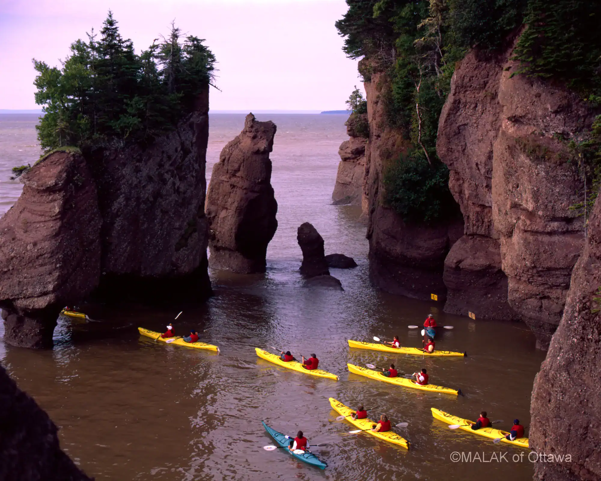 These red sandstone flowerpot rocks were carved by melting glaciers, then sculptured by the wind, frost and the highest tides in the world.