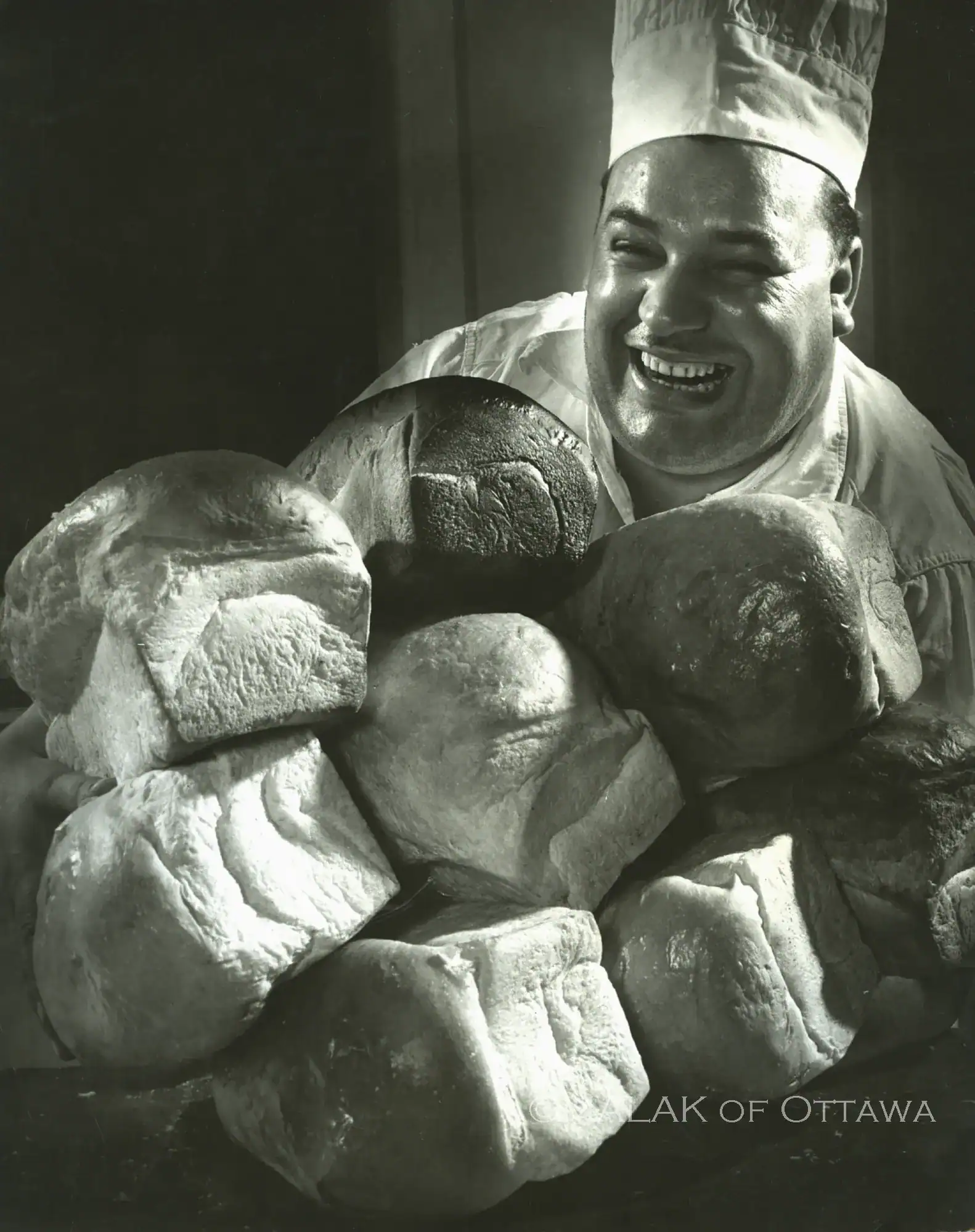 “The Happy Baker” was Malak’s favourite chef – at a Canadian International Paper Company logging camp. The chef’s cheerful face resembled the loaves of bread he had just baked. 1948